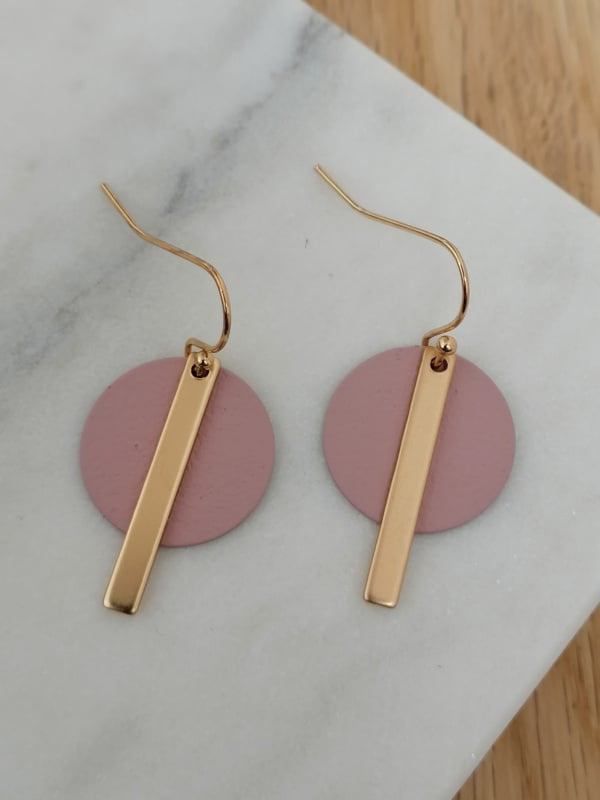 Goudkleurige haakjes met een oudroze schijfje en matgouden staafje Lengte: 3,5cm