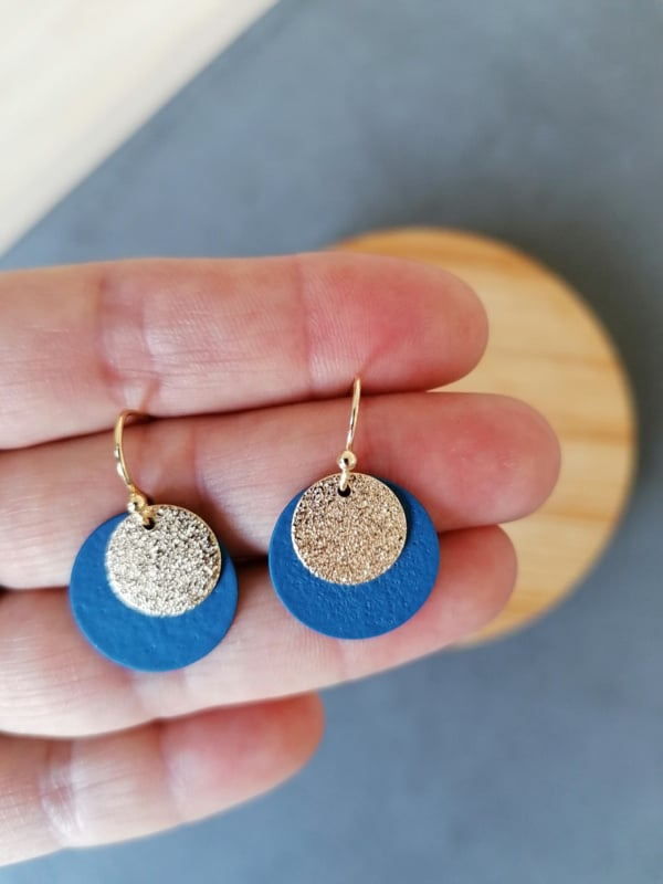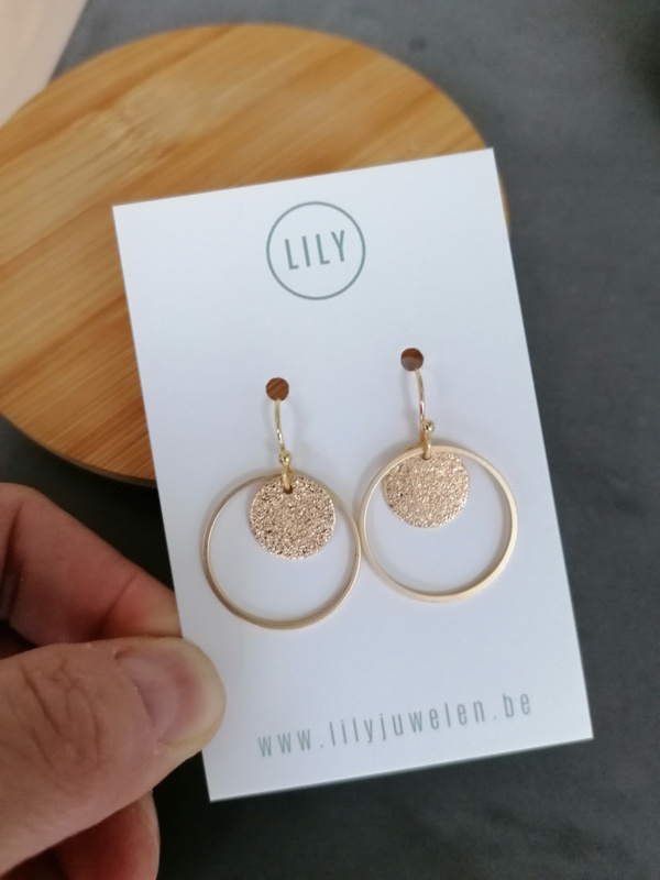 Goudkleurige oorhaakjes met schijfje en cirkel. Ook in andere kleurtjes beschikbaar! Totale lengte: 3cm