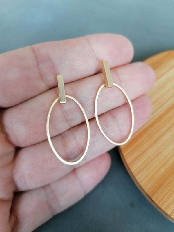 Stijlvolle oorbellen bestaande uit goudkleurige stekertjes en een ellips Lengte: 3,5cm